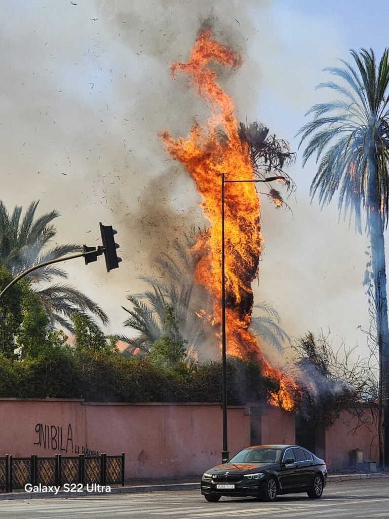 اندلع حريق في أشجار النخيل بمنطقة تاركة بمراكش يوم الأحد سابع عشر من غشت الجاري ، و شب الحريق بشكل مفاجيء مما آثار حالة استنفار بالمنطقة ، و انتشرت النيران بسرعة في مجموعة من أشجار النخيل جراء هبوب رياح الشركي القوية مع ارتفاع درجة الحرارة التي تشهدها المدينة، و من المنتظر أن تفتح السلطات المحلية و الأمنية تحقيقا في هذه الكارثة لمعرفةةأسبابها ، فهل هي نتيجة عوامل طبيعية أم كانت فعل فاعل ؟