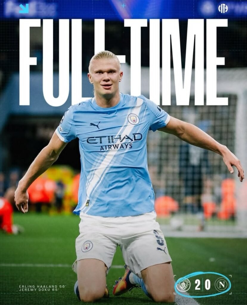 سجل إيرلينغ هالاند هدفًا في مباراة مانشستر سيتي ضد نابولي، ليصل إلى هدفه رقم 50 في دوري أبطال أوروبا في مباراته الـ49، محطمًا الرقم القياسي السابق المسجل باسم رود فان نيستلروي.