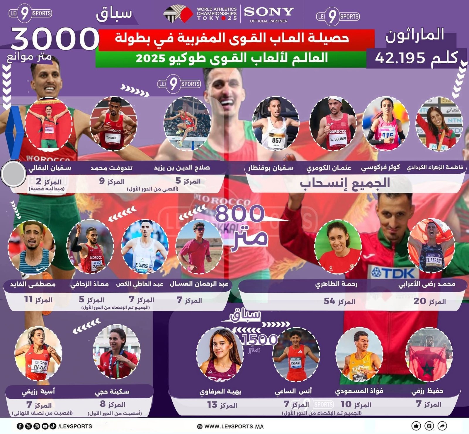خرجت ألعاب القوى المغربية من بطولة العالم بطوكيو 2025 بحصيلة متواضعة للغاية، إذ لم تتمكن من إحراز سوى ميدالية فضية وحيدة عبر العداء سفيان البقالي في سباق 3000 متر موانع، في وقت كانت التوقعات معلقة على تحقيقه الذهبية، فيما جاءت نتائج باقي العدائين خارج دائرة التنافس على المراتب المتقدمة،و اعتبر