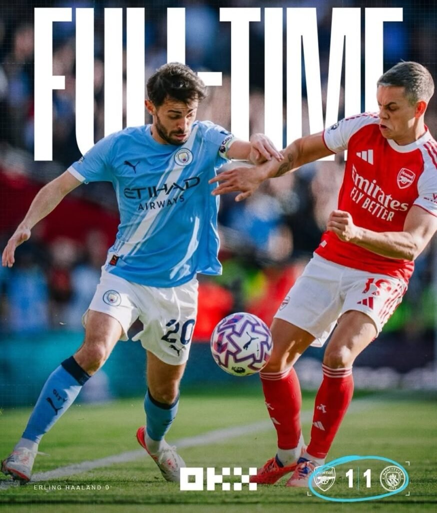 آرسنال 1-1 مانشستر سيتي: انتهت المباراة المثيرة بين الفريقين بالتعادل، ليواصل كل منهما المنافسة على المراكز العليا.