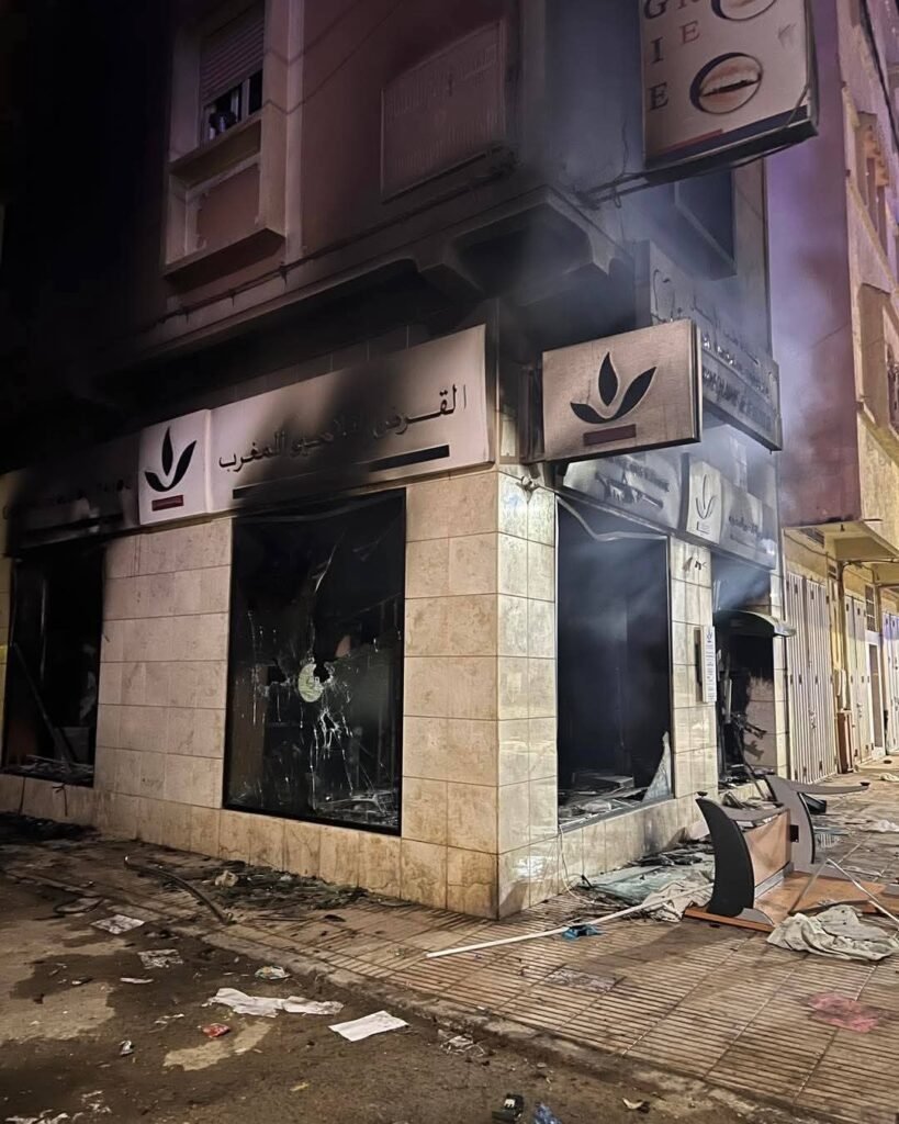 وحسب ما عاينته مصادر محلية، فإن الاحتجاجات التي بدأت بشكل سلمي، سرعان ما انحرفت عن مسارها لتتحول إلى عمليات تخريب وإشعال النيران في الممتلكات العامة والخاصة، شملت محلات تجارية ووكالات بنكية، من بينها فرع « بريد بنك »، إضافة إلى إضرام النار في سيارات ودراجات نارية تابعة للأمن.