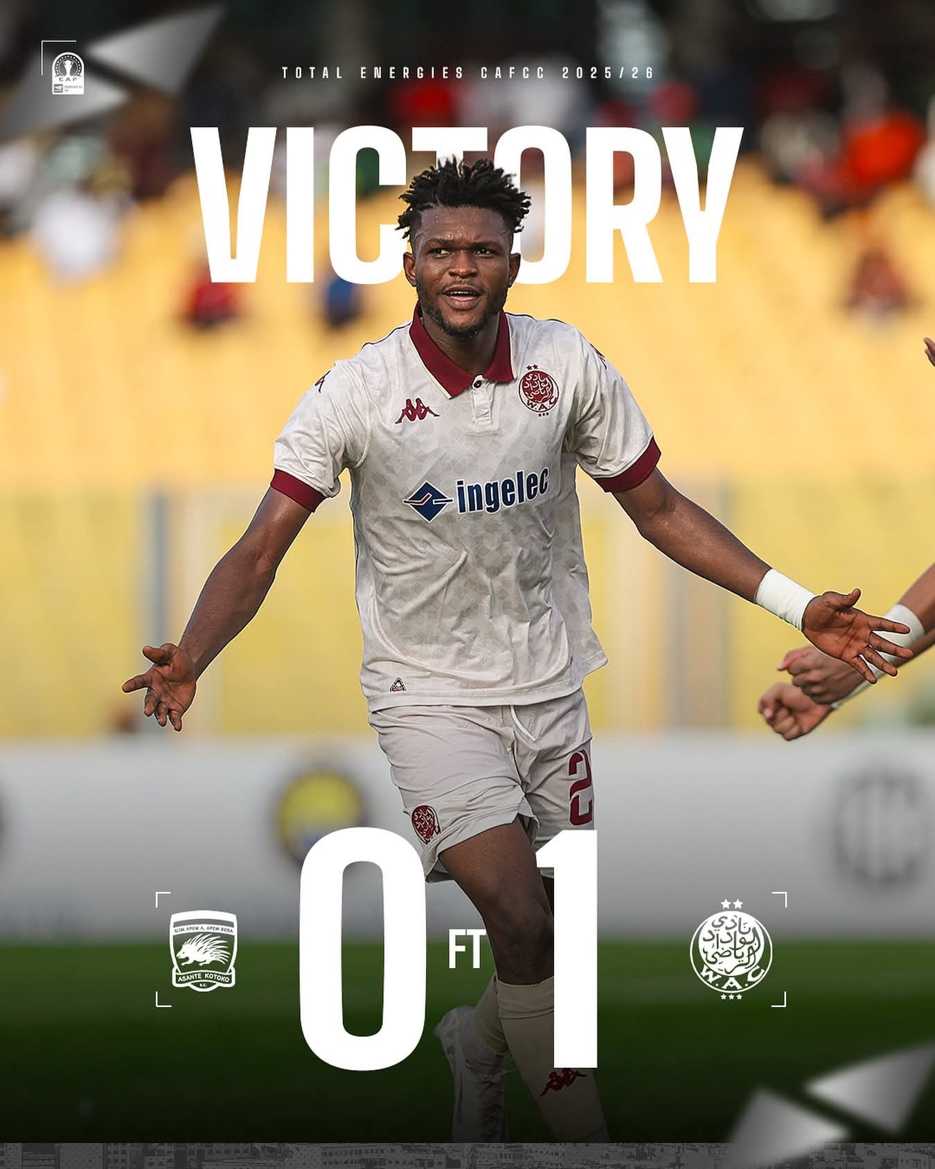 أكمل نادي الوداد الرياضي المغربي انطلاقته القوية في كأس الكونفدرالية الإفريقية 2025، بعد أن حقق فوزًا ثمينًا خارج قواعده على فريق أشانتي كوتوكو الغاني، بهدف نظيف، في مباراة ذهاب الدور التمهيدي الثاني التي أُقيمت على ملعب أوهيني دجان في العاصمة أكرا.وهذه