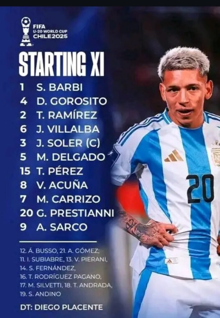 أما المنتخب الأرجنتيني، فقد أعلن عن تشكيلته الأساسية التي ستخوض النهائي، وجاءت على النحو التالي: