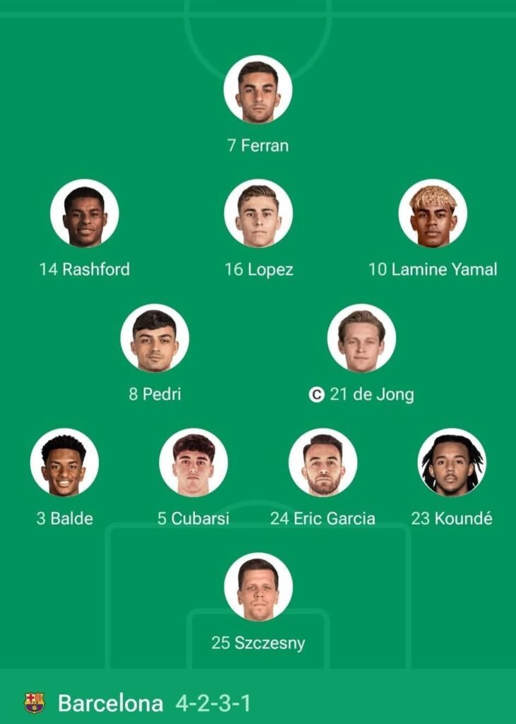 ويخوض برشلونة المواجهة بغيابات مؤثرة أبرزها روبرت ليفاندوفسكي ورافينيا وجافي بسبب الإصابة، ما دفع المدرب هانزي فليك للاعتماد على توليفة شابة يقودها الثنائي الموهوب يامال ولوبيز، إلى جانب الوافد الجديد راشفورد.