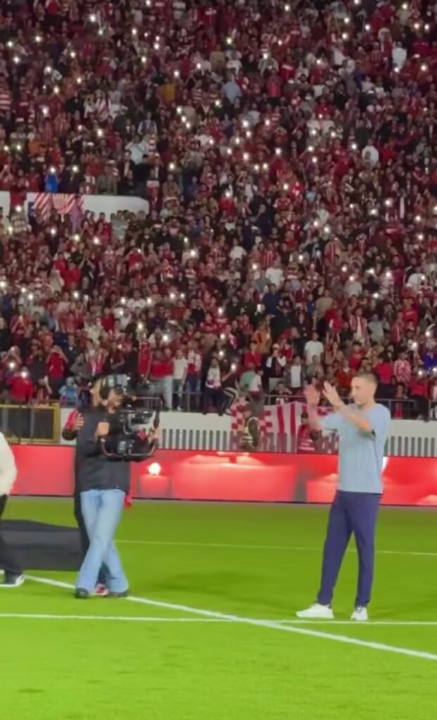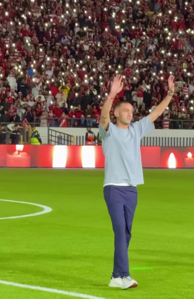 في حدث كروي استثنائي، شهد مركب محمد الخامس بالدار البيضاء مساء اليوم تقديم النجم المغربي حكيم زياش كلاعب جديد ضمن صفوف نادي الوداد الرياضي، في أجواء احتفالية عالمية حضرها آلاف المشجعين الذين امتلأت بهم مدرجات الملعب قبل انطلاق لقاء الوداد واتحاد طنجة.