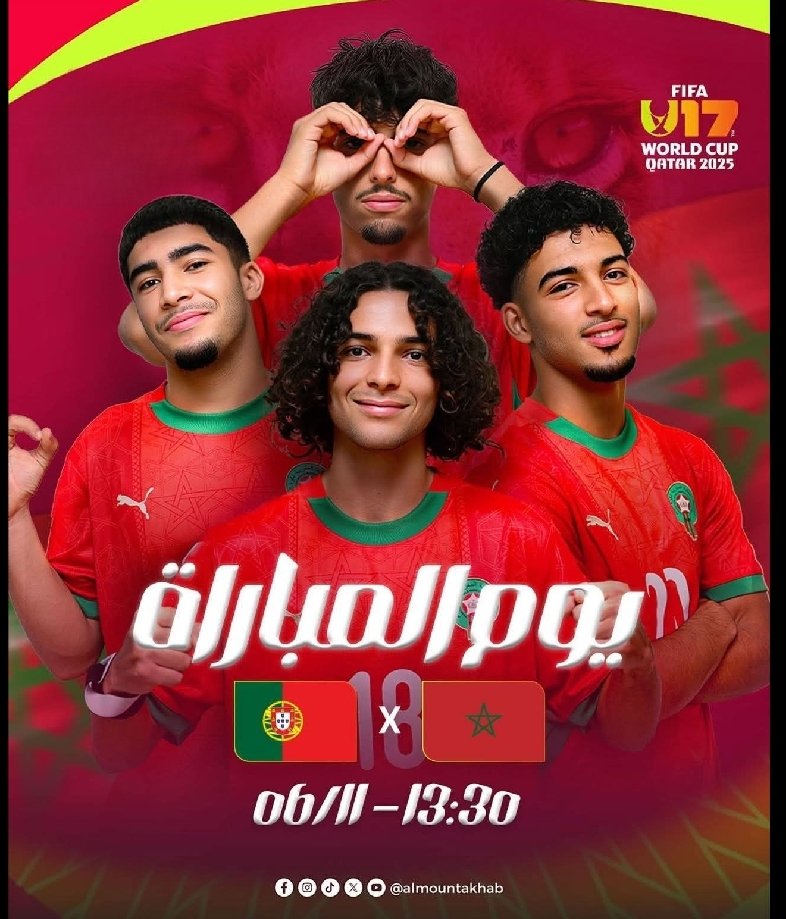 يترقب عشاق الكرة المغربية مساء اليوم الخميس 6 نونبر 2025، مواجهة حاسمة تجمع بين المنتخب الوطني المغربي لأقل من 17 سنة ونظيره البرتغالي، ضمن منافسات الجولة الثانية من دور المجموعات لكأس العالم للفتيان المقام بدولة قطر.
