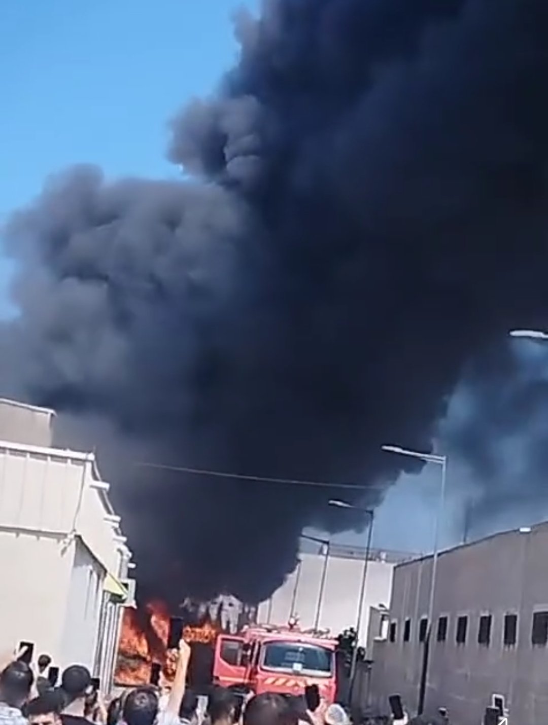 وبدأ الحريق بشكل مفاجئ في أحد المعامل، رافقته انفجارات متواصلة، قبل أن يمتد بسرعة إلى محيط معمل آخر يتواجد به عدد من السيارات والشاحنات.