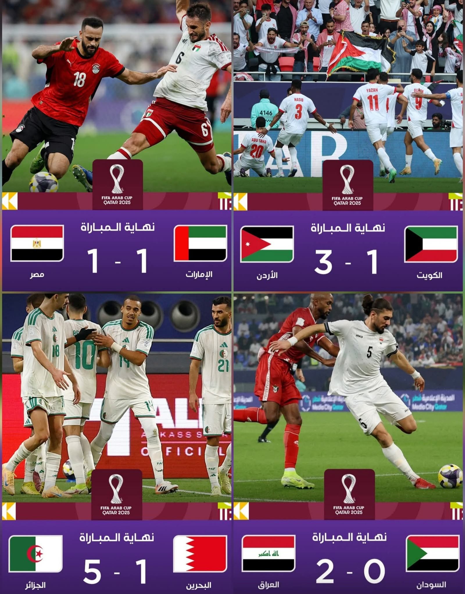 شهدت منافسات كأس العرب فيفا، اليوم السبت، أربع مواجهات قوية اتسمت بالندية والإثارة، وأسفرت عن نتائج متباينة أعادت ترتيب مجموعات البطولة وأشعلت المنافسة بين المنتخبات العربية.