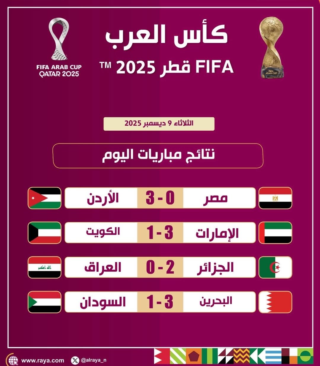 اليوم كان مليئًا بالإثارة والنتائج المفاجئة، أبرزها خروج مصر المبكر، وصعود قوي لمنتخبات الأردن والجزائر والإمارات.