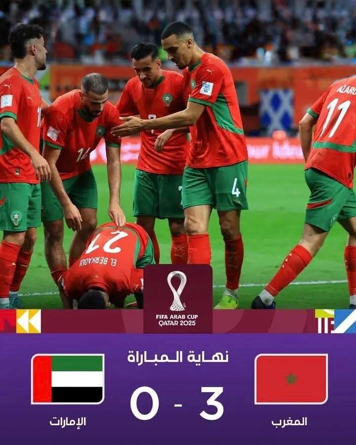 حجز منتخبا المغرب الرديف والأردن بطاقتي التأهل إلى نهائي كأس العرب، عقب فوزين مستحقين في مباراتي نصف النهائي على حساب الإمارات والسعودية تواليًا، ليُضرب موعد نهائي عربي خالص، يحمل توقيعًا مغربيًا واضحًا على مستوى القيادة التقنية.حيث إكتسح المنتخب الوطني
