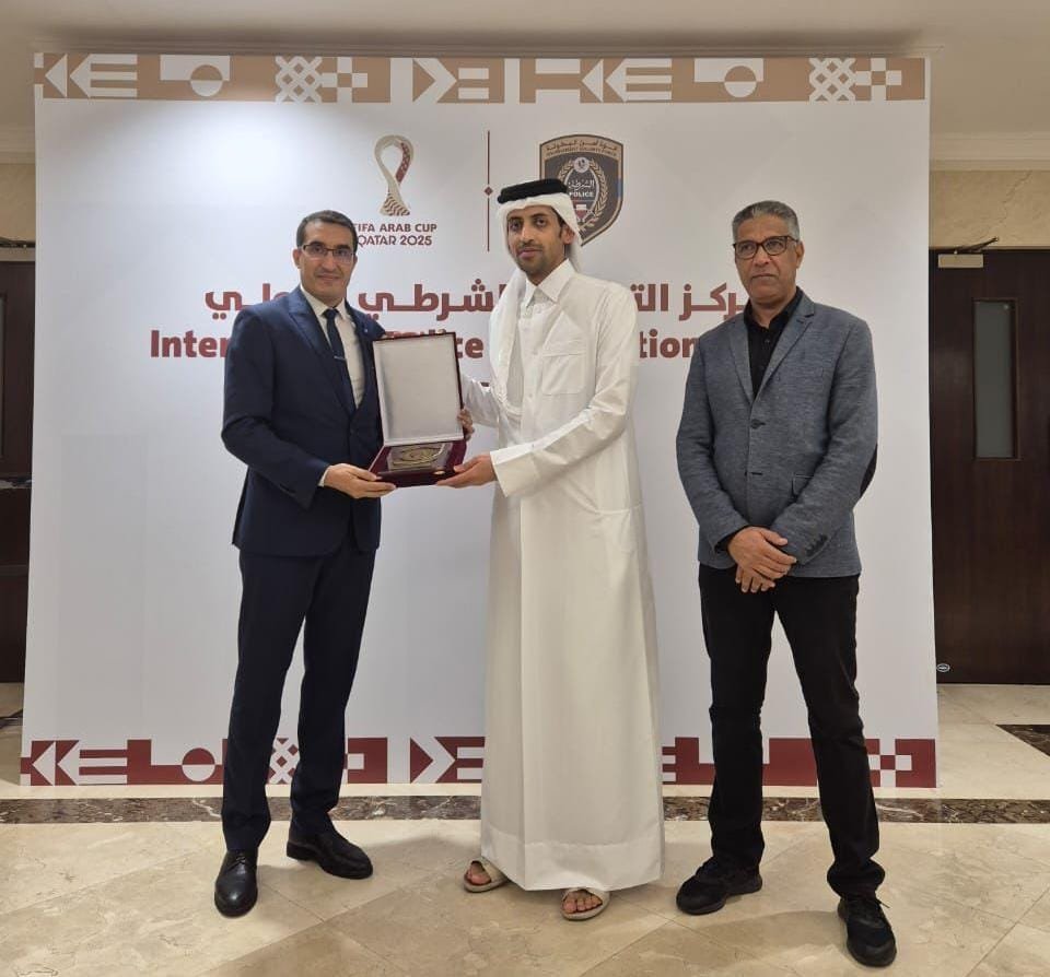 خلال حفل اختتام العمل بمركز التعاون الأمني العربي، المقام بالعاصمة القطرية الدوحة على هامش منافسات كأس العرب لكرة القدم، تلقى الوفد الذي يمثل المديرية العامة للأمن الوطني تكريما وإشادة خاصة من قبل السلطات الأمنية القطرية.
