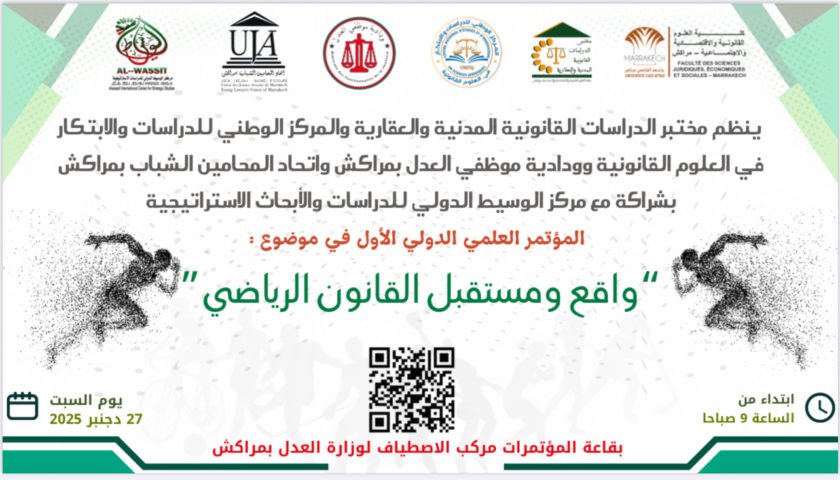 تستعد مدينة مراكش لاحتضان المؤتمر العلمي الدولي في نسخته الأولى يوم السابع و العشرين من الشهر الجاري حول موضوع( واقع و مستقبل القانون الرياضي ) ، و ذلك بقاعة المؤتمرات الكبرى بمركز الاصطياف التابعة لوزارة العدل، و ستنطلق فعاليات هذا المؤتمر البارز على الساعة التاسعة صباحا ، وينظم هذا اللقاء العلمي من طرف مختبر الدراسات القانونية المدنية و العقارية ، و المركز الوطني للدراسات و الابتكار في العلوم القانونية ، و ودادية موظفي وزارة العدل بمراكش، و اتحاد المحامين بالمدينة الحمراء، بشراكة مع مركز الوسيط الدولي للدراسات و الأبحاث و الاستراتيجية، و مساهمة عدد من الهيئات الأكاديمية و المؤسسات الجامعية ، يهدف هذا المؤتمر إلى فتح نقاش علمي معمق حول واقع التشريع الرياضي في المغرب في ظل التحولات المتسارعة التي يشهدها القطاع الرياضي على على المستوى التشريعي او المؤسساتي، إضافة إلى تسليط الضوء على الإكراهات القانونية المرتبطة بتدبير النزاعات الرياضية و العولمة و الاحتراف و العقود و المسؤولية القانونية، و يأتي هذا المؤتمر الدولي الأول في سياق وطني و قاري خاص يتسم بتعاظم الرهان على تطوير المنظومة الرياضية بالمغرب بما ينسجم مع الدينامية الإصلاحية التي تعرفها البلاد ، و يعزز القانون الرياضي كأداة أساسية لضمان الشفافية و حماية الحقوق و تحقيق العدالة داخل الحقل الرياضي، و من المرتقب أيضا أن تتناول أشغال هذا المؤتمر مجموعة من المحاور، من ضمنها الإطار القانوني المنظم للرياضة، و التحكيم الرياضي ، و العلاقة ببن القضاء العادي و الهيئات الرياضية ، اضافة إلى التحديات التي تفرضها العولمة الرياضية و الاحتراف .