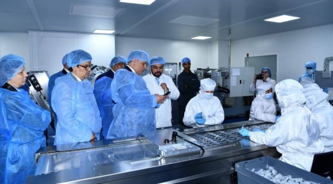 أشرف رياض مزور وزير الصناعة و التجارة مرفوقا بعزيز بونيان عامل إقليم الرحامنة يوم الجمعة خامس عشر يناير الجاري على تدشين على وحدة صناعية جديدة متخصصة في صناعة المستلزمات الطبية بالحي الصناعي بسيدي بوعثمان بإقليم الرحامنة و يهم هذا المشروع الصناعي الذي تشرف عليه شركة ( ميديكار ) إحداث وحدة إنتاج حديثة باستثمار إجمالي يناهز خمسة و ثمانين مليار درهم على مساحة تفوق عشرة ألف متر مربع، كما سيوفر هذا المشروع سبعين منصب شغل مباشر، إضافة إلى طاقة انتاجية سنوية تصل إلى 450 مليون حقنة طبية، و تتخصص هذه الوحدة الصناعية بإنتاج الحقن الخاصة بالتلقيح ذاتية التعطيل إضافة إلى الحقن الطبية و الإبر مما سيمكن من تلبية حاجيات السوق الوطنية، إلى جانب توجيه جز ء مهم من الانتاج إلى التصدير خاصة نحو الاسواق الأوروبية و الافريقية.
