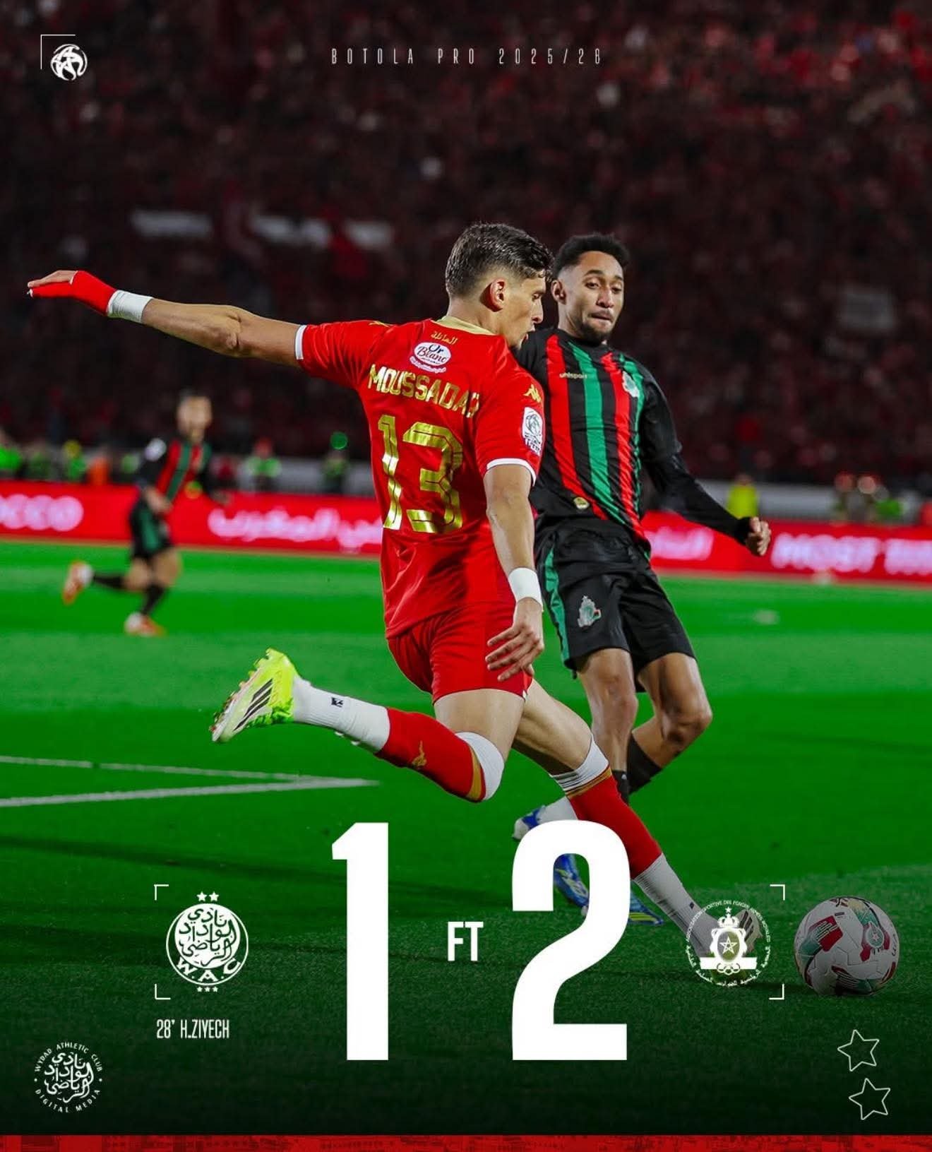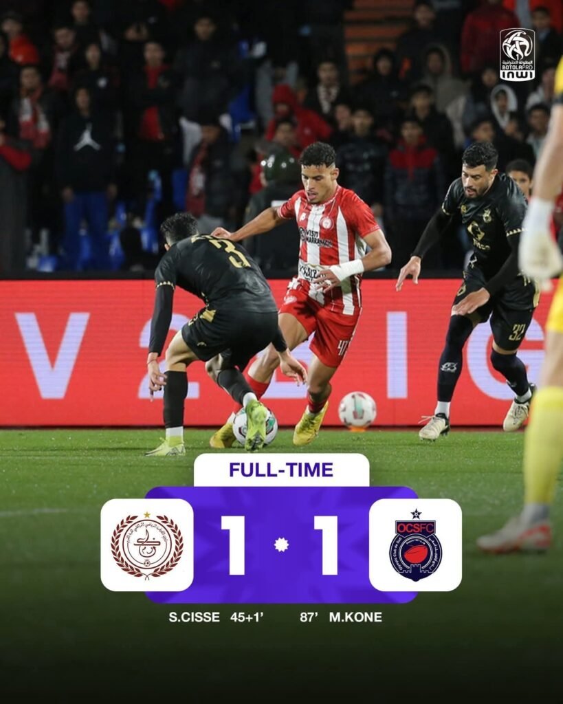 كما انتهت مواجهة الكوكب المراكشي وأولمبيك آسفي بالتعادل (1-1)، ليرفع الكوكب رصيده إلى 12 نقطة في المركز الـ11، فيما بقي أولمبيك آسفي في المركز الأخير برصيد 7 نقاط.