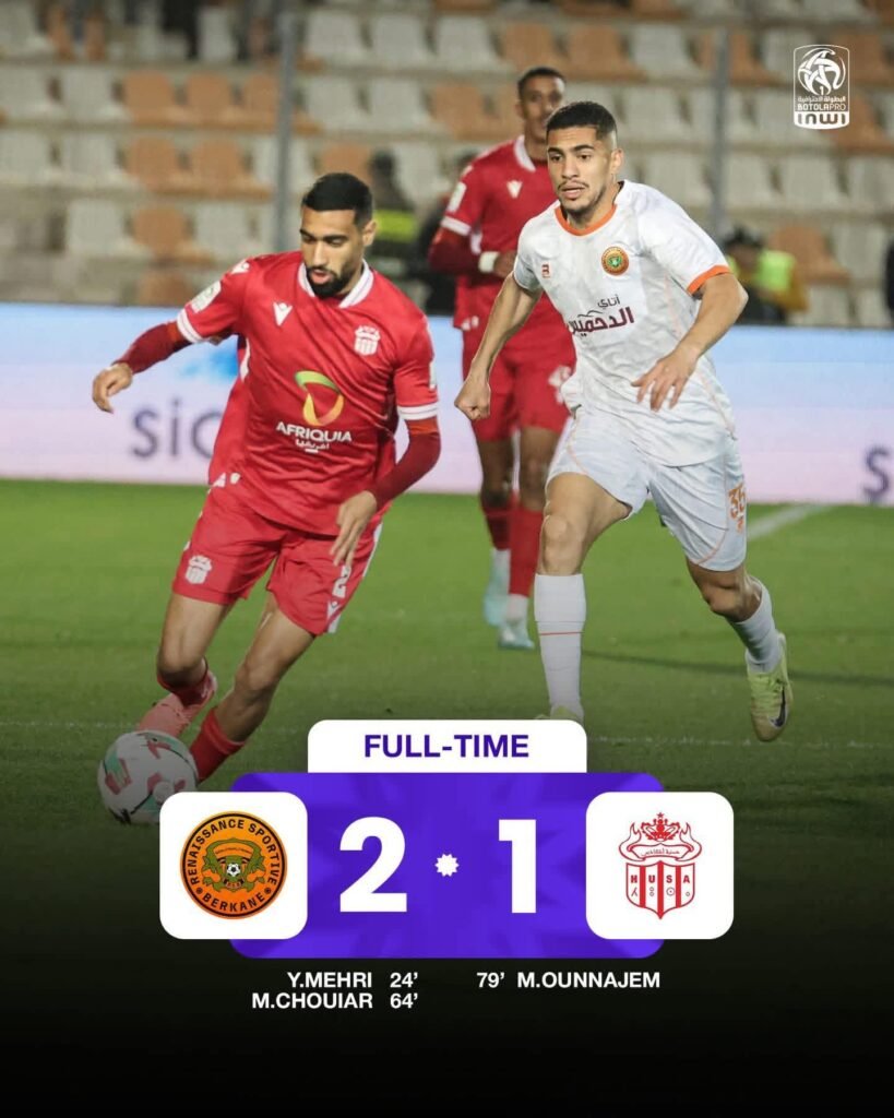 وفي مباراة أخرى، عاد نهضة بركان إلى سكة الانتصارات بفوزه على حسنية أكادير بنتيجة (2-1)، ليرتقي إلى المركز السادس برصيد 21 نقطة، مقابل بقاء الحسنية في المركز التاسع بـ15 نقطة.