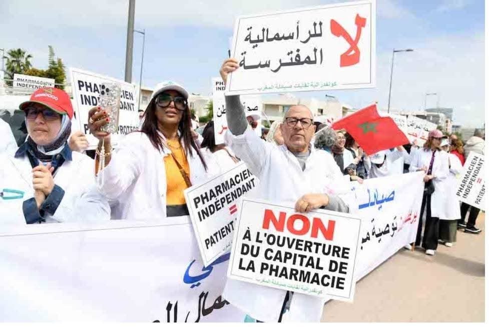 ورفع المحتجون، المنتمون لهيئات مهنية من بينها كونفدرالية نقابات صيادلة المغرب، شعارات من قبيل: “الصيدلة ماشي للبيع” و“يا صحاب الشكارة الصيدلة رسالة”، معتبرين أن التوصيات الواردة في رأي المجلس “تفتح الباب أمام دخول مستثمرين لا ينتمون للمهنة إلى مجال حساس يرتبط مباشرة بصحة المواطنين”، وهو ما يرونه تهديداً لاستقلالية الصيدلي ودوره الصحي.و
