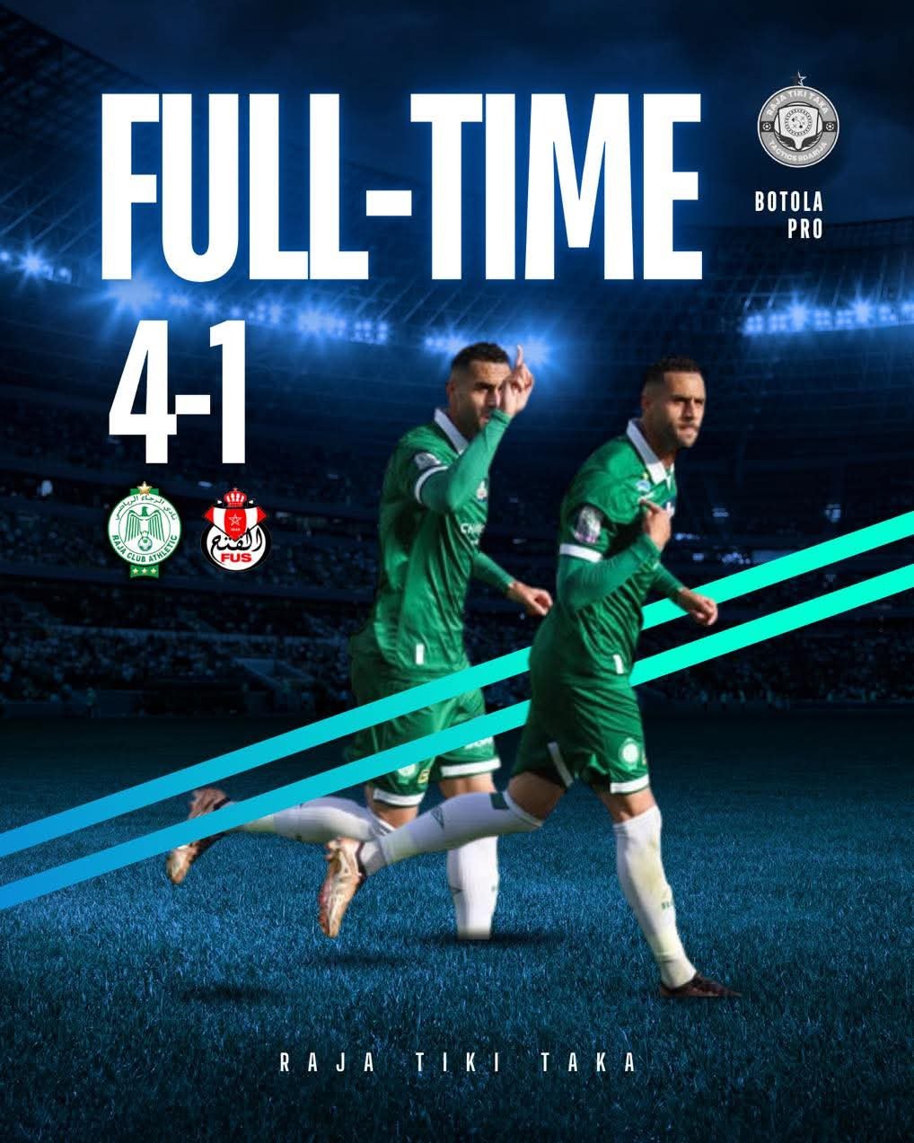 المباراة جرت في أجواء حماسية صنعتها جماهير الرجاء، وترجمتها العناصر الخضراء إلى أداء هجومي فعّال تُوِّج بأربعة أهداف ونقاط المباراة كاملة.