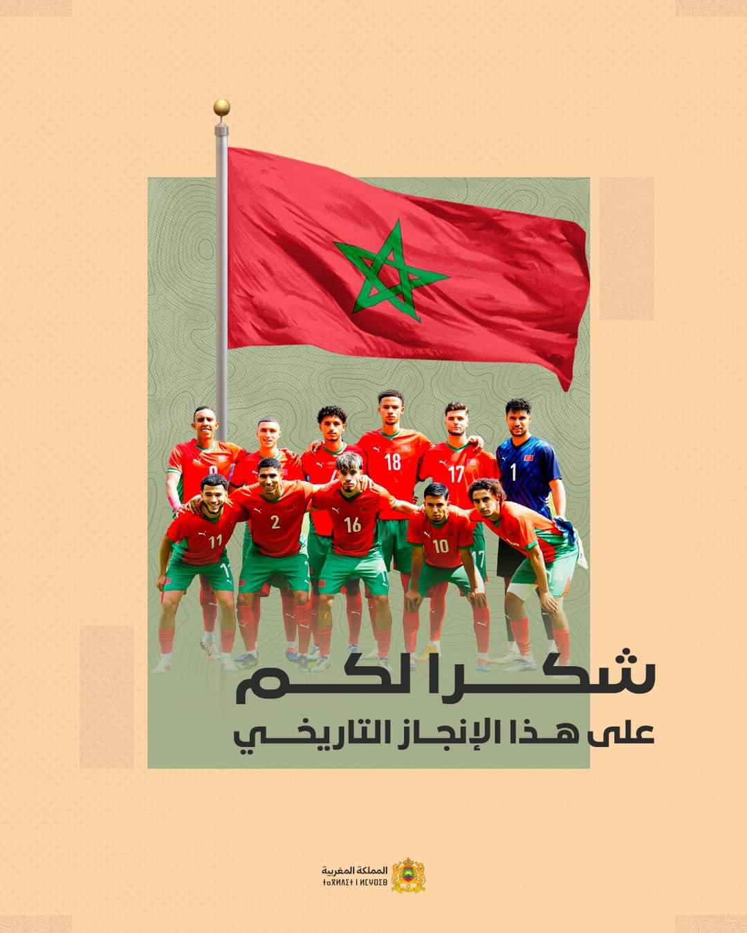 كما أعبر عن شكري وامتناني لجلالة الملك محمد السادس على رؤيته الاستراتيجية في تطوير كرة القدم الوطنية، دون نسيان الدور المحوري للجامعة الملكية المغربية لكرة القدم بقيادة السيد فوزي لقجع التي ساهمت في تحقيق هذا النجاح والطفرة المتميزة التي شهدتها الكرة المغربية ، كذلك فعل رئيس الحكومة و بصيغة اخرى جاء فيها :جد فخور بما حققه أشبال الأطلس في الألعاب الأولمبية لهذه الدورة، هؤلاء اللاعبون قدموا بطولة تاريخية وحققوا إنجازا كبيرا للمغرب بحصولهم على الميدالية البرونزية، وإهدائهم المملكة ثاني ميدالية أولمبية في أولمبياد باريس 2024.