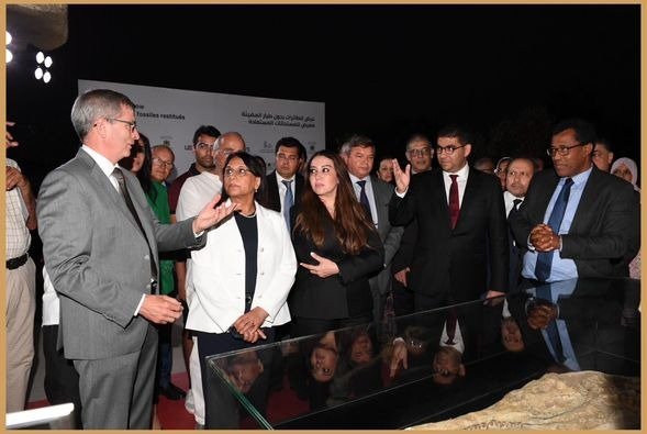 أشرفت يوم أمس بالموقع الأركيولوجي سيدي عبد الرحمان بالدار البيضاء على افتتاح معرض مجموعة من المستحاثات الأثرية التي تمت استعادتها إلى المغرب، ويشكل المعرض مجموعة من المستحاثات مثل جمجمة تمساح تم استرجاعها من الولايات المتحدة الأمريكية، ويعود تاريخها إلى 56 مليون سنة، وأنواع من ثلاثيات الفصوص وأسنان القرش تم استرجاعها من جمهورية الشيلي، ويعود تاريخها إلى حوالي 500 مليون سنة، ومستحاثة تمثل نوعا من التمساحيات تم استرجاعها من ألمانيا ويعود تاريخها إلى حوالي 200 مليون سنة.