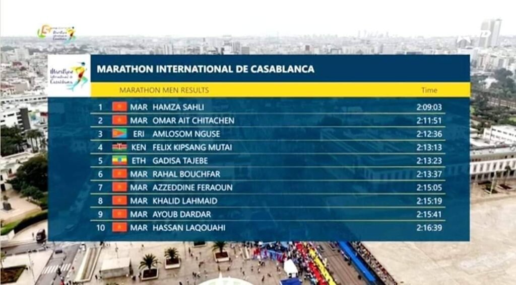 تمكن العداء المغربي حمزة السهلي من الفوز بالنسخة الـ15 لماراثون الدار البيضاء بزمن قدره 02.09.01.