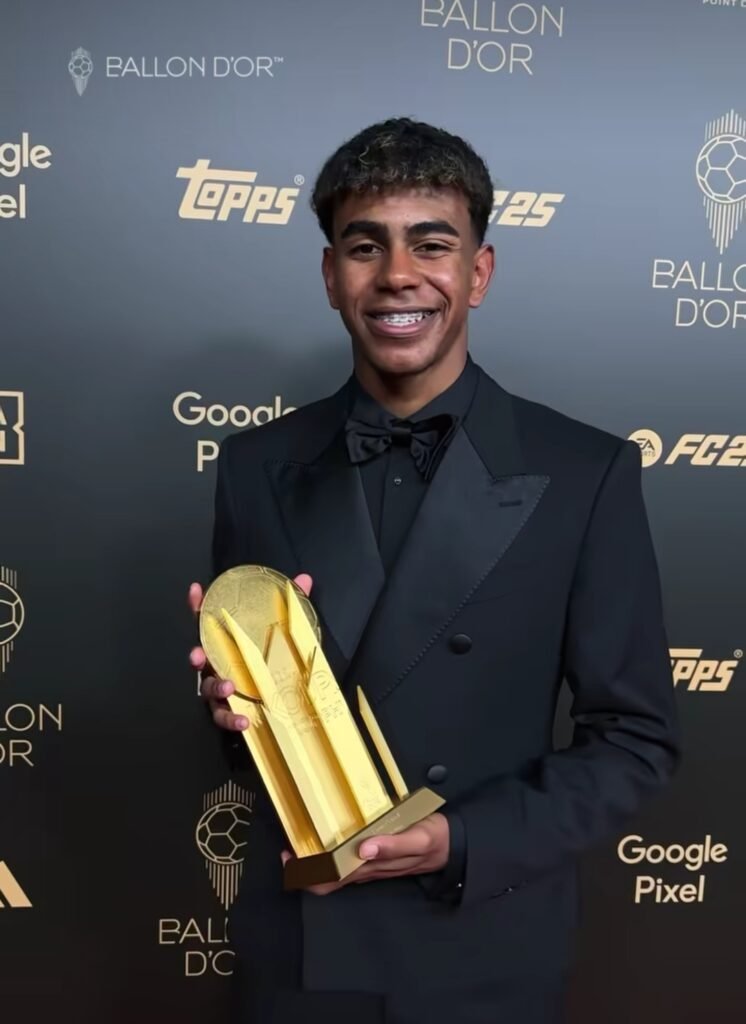 أبدى النجم الإسباني لامين يامال مهاجم نادي برشلونة سعادته بفوزه بجائزة كوبا كأفضل لاعب في العالم لعام 2024 بعدما أصبح أصغر لاعب فى التاريخ يحقق الجائزة لأفضل لاعب شاب.