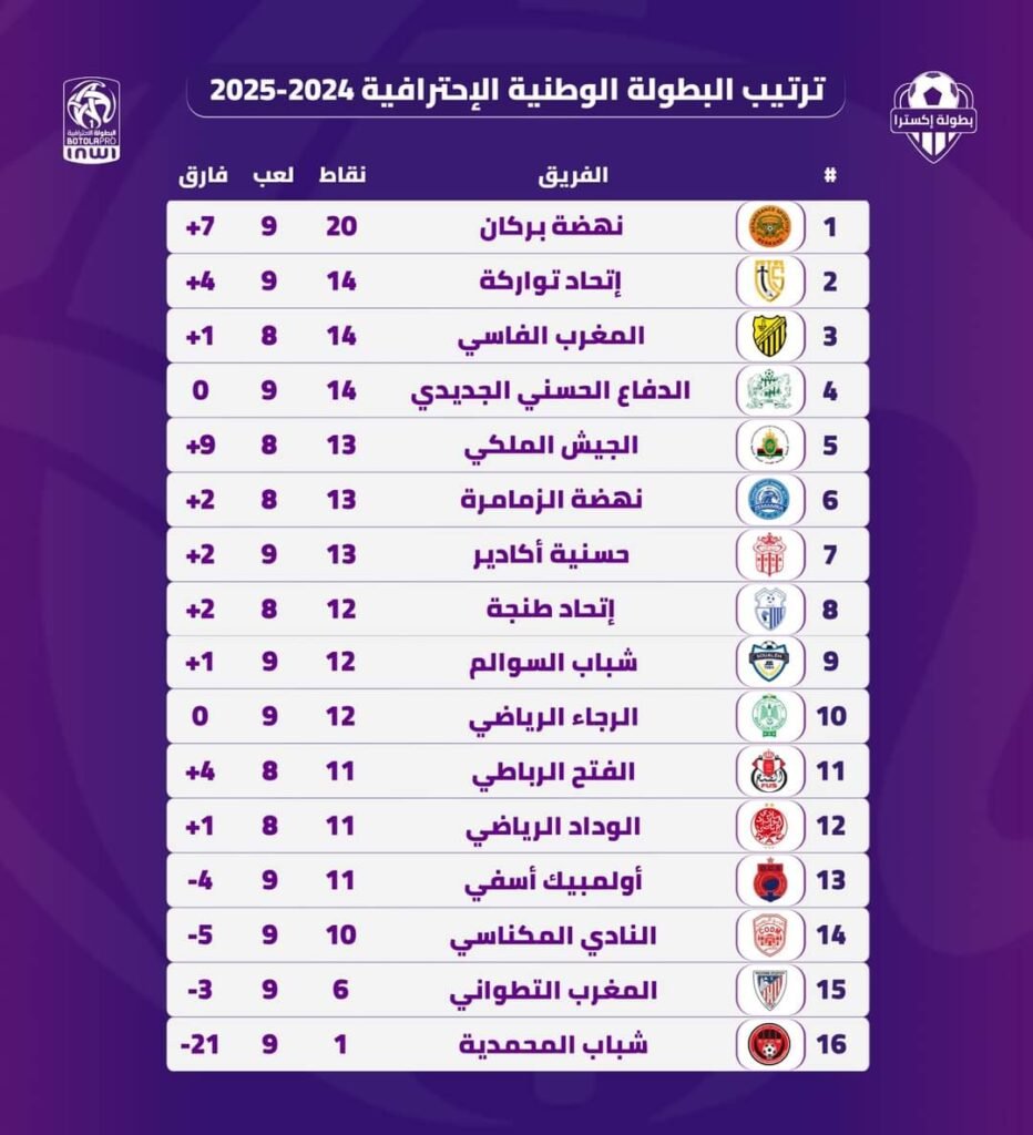 وبات نهضة بركان يحتل المرتبة الأولى برصيد 20 نقطة، حيث أن انتصاره على المغرب التطواني يأتي رابعا على التوالي، وبذلك يعزز صدارته للبطولة الاحترافية .