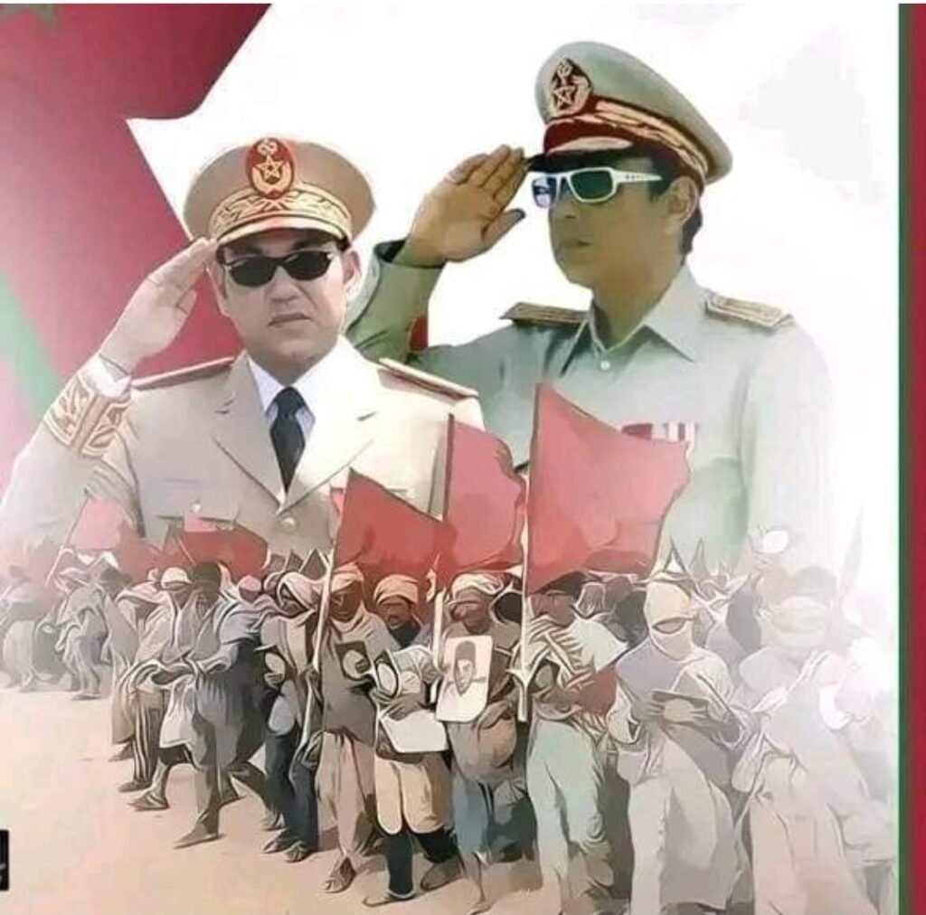 وقد حققت المسيرة الخضراء المظفرة أهدافها وحطمت الحدود المصطنعة بين أبناء الوطن الواحد، سلاحها كتاب الله، والذود عن حمى الوطن وحياضه، والتمسك بالفضيلة وبقيم السلم والسلام في استرداد الحق المسلوب والدفاع عنه.