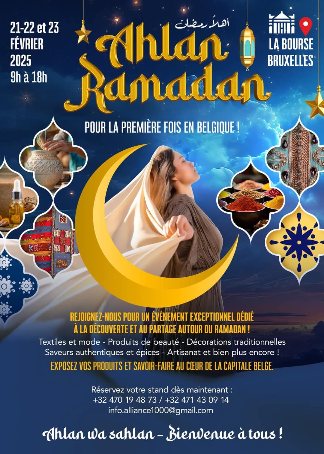 في خطوة متميزة تهدف إلى تعزيز التبادل الثقافي وتقوية أواصر التعايش بين مختلف الجاليات، تحتضن العاصمة البلجيكية بروكسل معرض « أهلاً رمضان » لأول مرة في مبنى البورصة الشهير، وذلك خلال الفترة من 21 إلى 23 فبراير. يأتي هذا الحدث برعاية وتنظيم جمعية » أليانس » ، التي تسعى إلى إبراز قيم رمضان وتعريف المجتمع البلجيكي بتقاليد الشهر الفضيل.