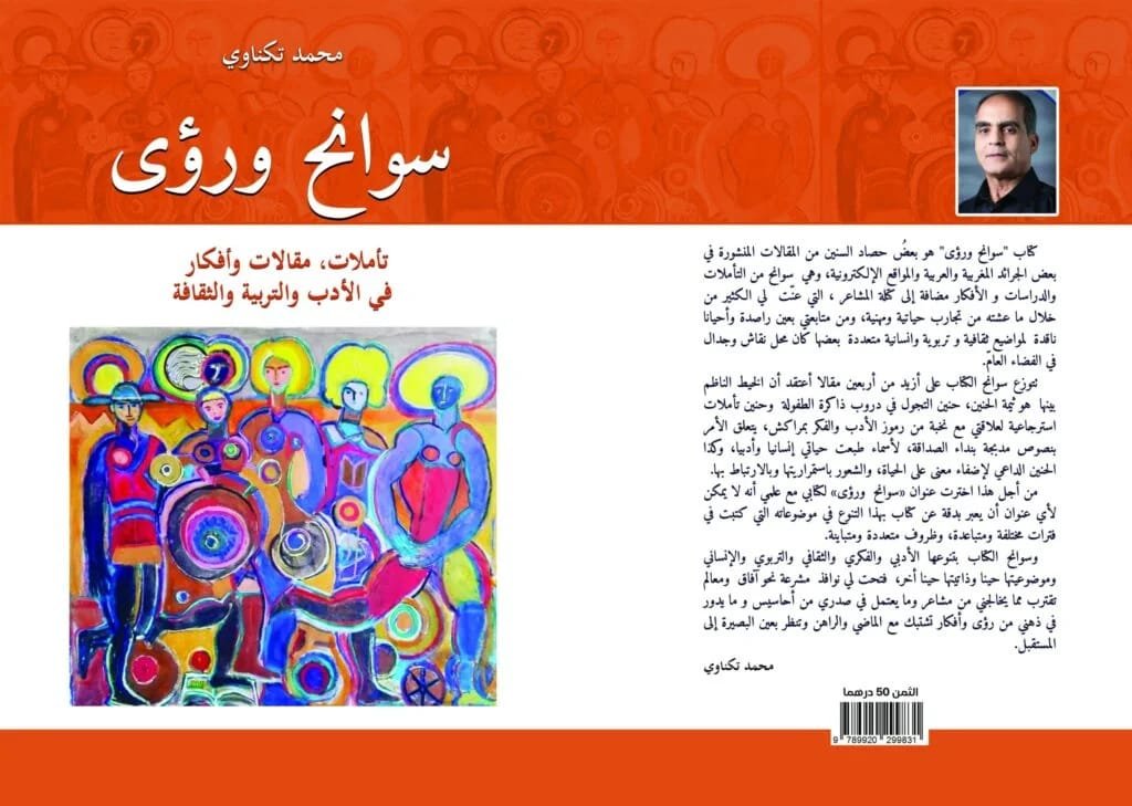 يحتظن رواق مؤسسة آفاق للدراسات و النشر ابتداءا من يوم السبت الرابع و العشرين من الشهر الجاري بساحة مسجد الكتبيين حفل توقيع كتاب » سوائح و رؤي » للكاتب الاعلامي محمد تكناوي، و ذلك في إطار الأنشطة الثقافية الموازية للمعرض الجهوي في نسخته الخامسة عشرة المقام بمدينة مراكش، و صدر الكتاب الجديد عن المطبعة و الوراقة الوطنية بالمدينة الحمراء، كما يتوزع على أكثر من أربعين مقالا منشورا في العديد من الجرائد المغربية و العربية و المواقع الإلكترونية، و التي تمتاز بتنوعها الأدبي و الفكري و الثقافي و التربوي و الانساني.