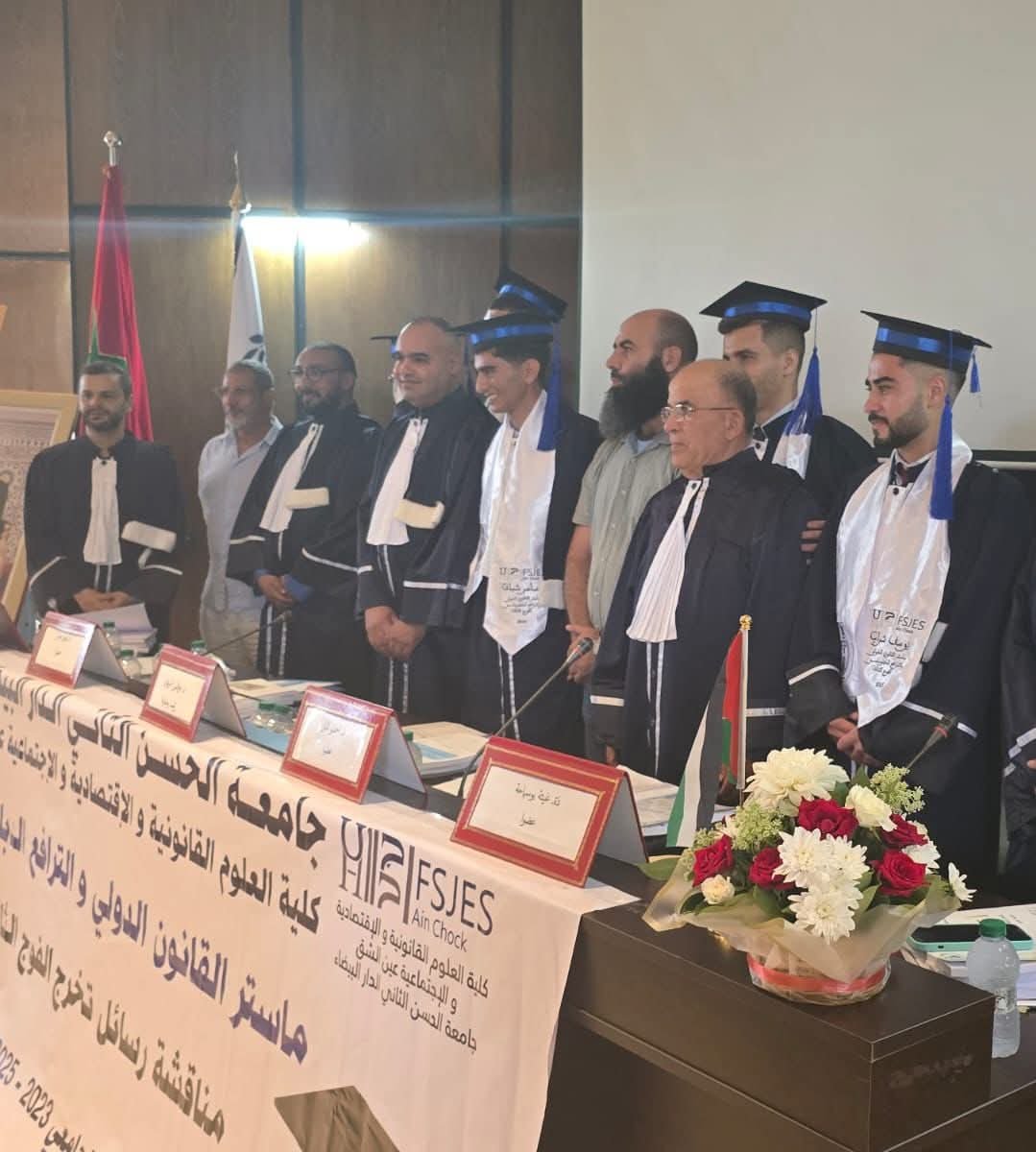 شهدت كلية العلوم القانونية والاجتماعية والاقتصادية عين الشق في الدار البيضاء، حدثاً مميزاً، يتعلق بتتويج خمسة طلبة فلسطينيين من قطاع غزة بشهادات الماستر في تخصص الترافع الدبلوماسي والقانون الدولي.